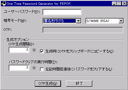 | otp_generate_time | 略可 | PEPOP サーバでの OTP 生成間隔